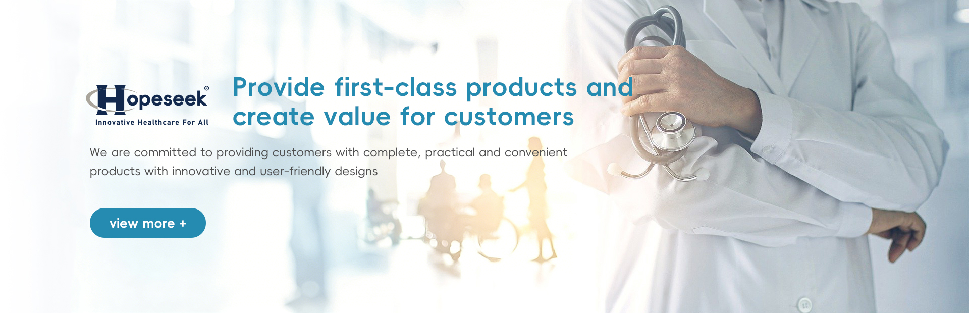 Our target is to provide high quality, ergonomically designed products, improve the patient care and provide the good solutions to all care staff. Innovative and user friendly designs, a cost effective production, and highly motivated marketing and distribution are the key dynamics for the Hopeseek Medical's improvements and success. The whole factory have been certified by ISO13485,and the main products have been approved by CE.